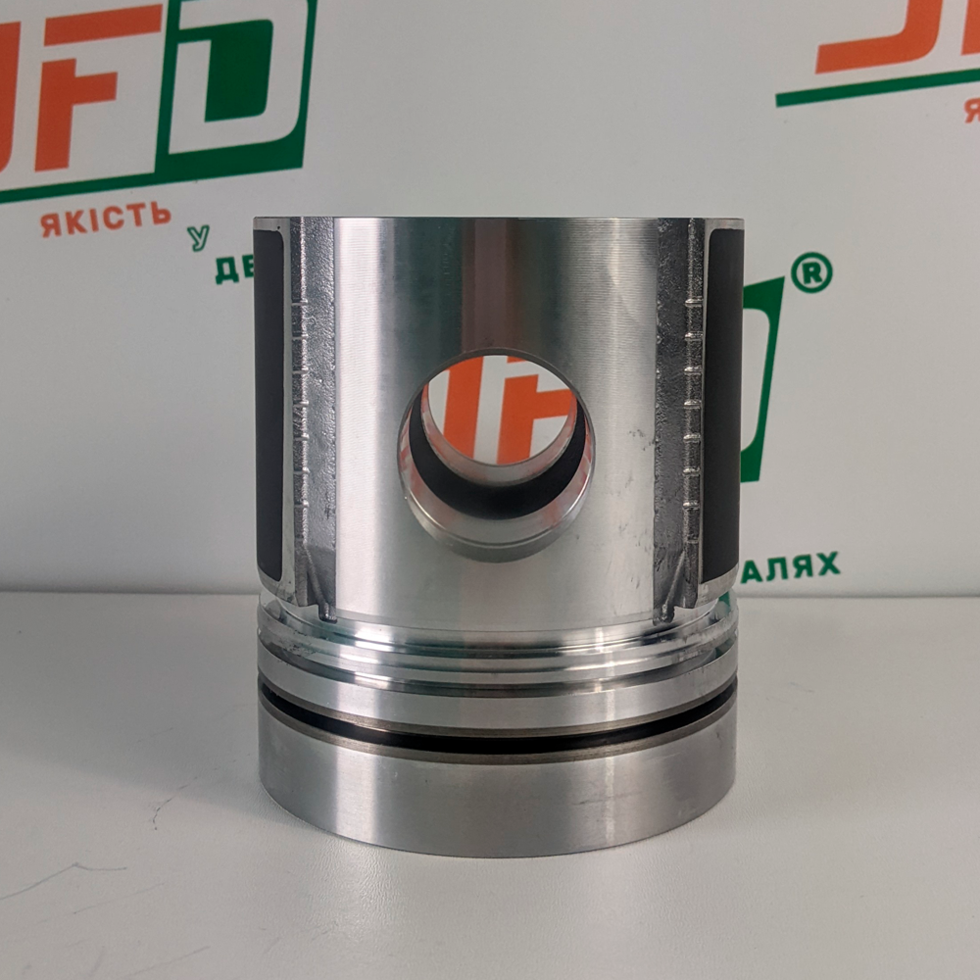 Особливості: днище плоске (без вирізів під клапани), верхня канавка зміцнена вставкою з нірезиста. По боках містить маслозгонні канали.